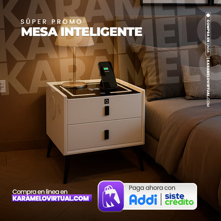 Convierte tu dormitorio en un espacio moderno y funcional con la mesa inteligente que lo tiene todo: biometría integrada, vidrio templado blanco, 2 cajones amplios y luces LED en 5 colores para crear el ambiente perfecto. Con altavoces integrados y puertos USB, carga tus dispositivos y disfruta tu música desde un solo lugar. Montaje fácil con accesorios incluidos: arma tu mesita en minutos y olvídate del desorden.