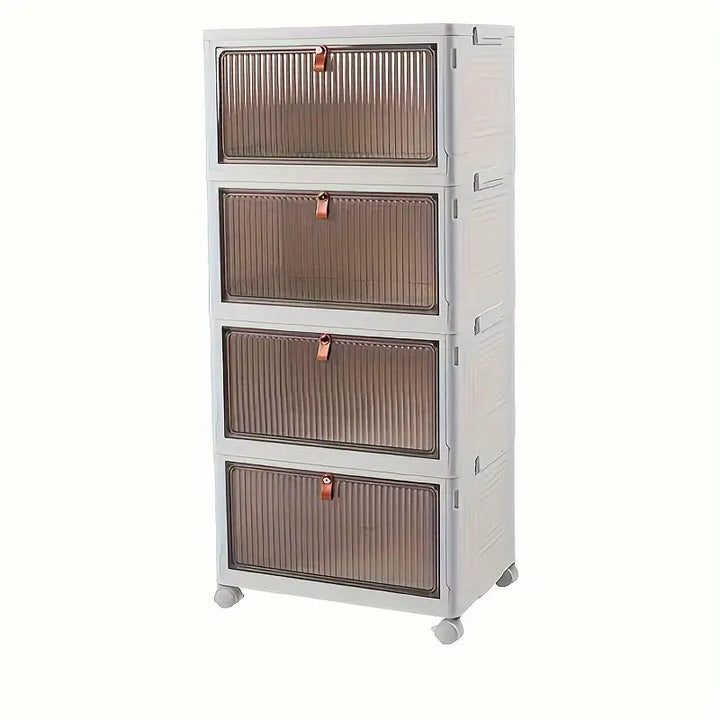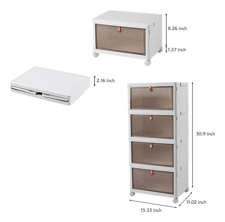 Caja de almacenamiento plegable de 4 niveles tapa, contenedores de almacenamiento apilables grandes 4 ruedas, cajones gabinete, carrito, organizador zapatillas de deporte, s, ropa, color blanco